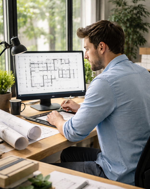La conception architecturale est pensée en lien direct avec le quotidien. Les espaces sont conçus pour être fonctionnels, cohérents et adaptés aux usages réels, tout en tenant compte des contraintes techniques, budgétaires et réglementaires.